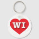 Este chaveiro apresenta um coração vermelho vibrante contendo as letras maiúsculas, brancas e em negrito WI, a abreviação oficial de Wisconsin, o estado do texugo.