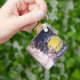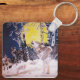 Uma imagem de um lobo uivando na lua com a mochila próxima agarra esta bela chaveiro. Artista internacional Jo-Ann Hayden