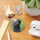 Adorável filhote de lobo negro uivando na grama.