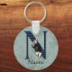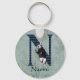 A design de Whimsical para Alice no País das Maravilhas, amantes de todas as idades, apresenta letra maiúscula / inicial N com preenchimento de harlequin preto e azul e ilustração original do Rabbit Branco que foi pintada, em um fundo de cor azul-azul, floral e vírgula angustiado. Personalizar com nome ou outra mensagem