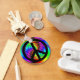 Arte fractal colorida com arco-íris colorida com um símbolo negro de paz.