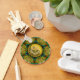 Símbolo amarelo-amarelo surround por pétalas geométricas de flores de penas de penas de pavão