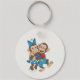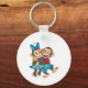 "This sweet and classic cartoon design features two monkeys in a loving embrace, suggesting a flirtatious or affectionate moment. One monkey wears blue overalls and a red shirt, while the other wears a blue polka-dot dress and a large blue bow with a daisy. Both characters have bright, smiling faces and are looking at each other. The style is simple, vibrant, and reminiscent of charming children's animation. This design is versatile for products aimed at couples, children, or anyone who appreciates cute, nostalgic, and wholesome imagery. Imagine it on apparel, greeting cards, sentimental home decor, or gift items."