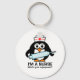 Chaveiros de enfermagem engraçadas com enfermeira de pinguins fofos e citação. Sou enfermeira, qual é a sua superpotência. Texto personalizável e cores. Engraçado ideia de presente para a semana de enfermeira, formando de enfermagem ou enfermeiras registradas. Cartoon de aves de origem animal com agulha da seringa.