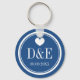 Festa de casamento de monograma personalizado a favor da chaveiro. Chaveiros monogramas com nomes de noiva e noiva e data de casamento. Símbolo de amor cardíaco bonito e cor de fundo personalizada, ou seja, azul e branco marinho náutico. Faça sua própria cadeia de chaves bonito para os convidados, noiva para ser, noiva, damas de honra, etc. Também é bom para chá de panela de classe, noivado, salve a data ou aniversário.