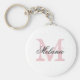 Chaveiros de letras monogramas de nome personalizado. Letra inicial Vintage com tipografia de script elegante. Boa ideia de presente para mulheres e raparigas. Faça seu próprio monograma presente para casamento, chá de panela, solteira, final de semana das meninas, noivado, aniversário, aniversário etc. Divertido para a noiva ser, dama de noiva, madrinha de casamento, florista, mãe da noiva, mãe do noivo etc. Rosa e branco.