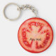 Fatia nova de tomate em um detentor de chave com um tema de comida com espaço de texto que você pode personalizar com um nome, mensagem ou nome da organização. Projetado como um favor partidário, dado para uma organização ou membros, ou apenas um presente de tema de fruta bonito.