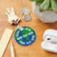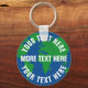 O botão do planeta redondo chaveiro com texto personalizado. Logótipo do globo azul e verde com modelo de texto branco. Criar cadeias-chave para o aquecimento global, as questões ambientais das alterações climáticas, a preservação da natureza, a energia verde, a proteção das florestas, os protestos, a sopa plástica, o reciclar, o reciclagem, etc. Desenho do mar terrestre. Salve o planeta, salve a Terra!
