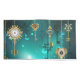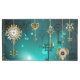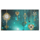 Chaves Douradas e antigas com engrenagens e marcadores penduram em correntes douradas sobre fundo verde luminoso.