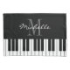 Caixa preto e branco personalizada do travesseiro das chaves do piano do monograma. Faça seus próprios cobrir do fundamento para o jogador de piano, o pianista, o estudante, o professor, o músico, o instrutor, os miúdos, o design monogrammed feito sob encomenda dos amigos etc. com o gráfico do teclado do instrumento da música clássica. Modelo elegante da tipografia do roteiro. Decoração elegante e acessórios do quarto.