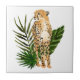 Cheetah Outlook I de Annie Warren. Um guepardo no estilo aquarela continua com folhas verdes tropicais no fundo. | 164730Z