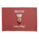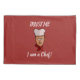 Cabeça de chef com chapéu, corcunda vermelha e texto personalizado.