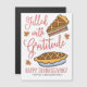 Adicione uma saudação de Ação de Graças à sua família. O design é composto por ilustrações de torta de abóbora.