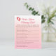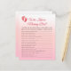 Descubra quem realmente conhece a melhor mãe com este divertido jogo de chás de fraldas! Esta atividade é uma maneira maravilhosa de colocar o convidado de honra em destaque e compartilhar algumas risadas e histórias. Os convidados terão uma grande oportunidade de responder a perguntas sobre os favoritos, anseios e a história das mamães. É um jogo pessoal e engajador que certamente será um destaque da festa. Apresentando nosso elegante e doce design floral de cereja rosa floral, esses cartões de jogo se misturarão lindamente com a decoração do seu partido. Este jogo faz parte da nossa coleção coesa de flores de cereja — certifique-se de procurar os itens correspondentes para um evento perfeitamente estilizado.