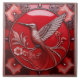 Cherry red faux relief Hummingbird ceramic tile inspired by Art Nouveau and Arts and Crafts movements with a floral background. Perfect for a housewarming gift to use as a trivet or to add a decorative tile in your own tiling. The ceramice tile is smooth, with a faux 3D effect. This is the left-facing tile. Pair it with the right-facing tile for a symmetrical tiling decor.