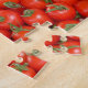 Fotografia de tomate cereja estampada nos bordos do quebra-cabeça.