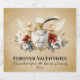 Vintage design with two small angels holding feather quills and writing, surrounded by flowers, in a light gold color palette to coordinate with the foil of the bottle, in the style of a vintage illustration