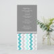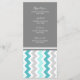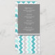 Elegante menu de janto de casamento em elegante azul-azul-azul-turquesa-turquesa-azul, cinza e padrão retrógrado-zags-chevron-branco, personalizável com seus detalhes de janto, disponível em uma grande variedade de produtos de casamento correspondentes.