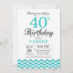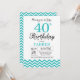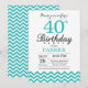 aniversário de 40 anos com Teal Chevron. Preto e Branco. Aniversário Adulto. Convidam o Homem ou a Mulher Bday. Para mais personalização, clique no botão "Personalizar" e use nossa ferramenta de design para modificar este modelo.
