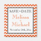 Imã salve a data personalizada na moda para anunciar seu casamento, projetada com um padrão chevron cor de laranja e branco.