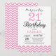 Convite para aniversário de 21 anos com Chevron Rosa. Preto & Branco. Aniversário Adulto. Convidam o Homem ou a Mulher Bday. Para mais personalização, clique no botão "Personalizar" e use nossa ferramenta de design para modificar este modelo.
