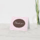 Trendy e moderno agradecemos cartas com um oval castanho sobre um padrão diagonal de ziguezague cor-de-rosa e branco. A mensagem dentro é impressa por personalização com sua própria mensagem personalizada de obrigados, ou você também pode facilmente excluir o texto dentro para escrever manualmente seus próprios sentimentos de gratidão. Estas cartas são excelentes para os aniversários e Chás de panela. Sem ordem mínima. São aplicáveis descontos em massa.