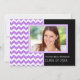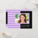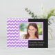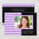 cartão com fotos personalizado de convite Festa de formatura em elegante e sofisticado roxo brilhante, diversão em preto e branco e padrão moderno de riscas de zigzags chevron. Personalize este cartão com fotos de formando adicionando o ano de sua graduação, sua própria foto e seus detalhes de festa de formatura.