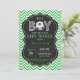 Convite ao Chá de fraldas de futebol. É um Garoto. Chalkboard e fundo verde Chevron. Para mais personalização, clique no botão "Personalizar" e use nossa ferramenta de design para modificar este modelo.