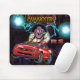 Camaro vermelho RS caracterizado com o logotipo de Camarostein em um mousepad. Excelente do olhar dos monstro e dos carros junto!