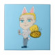 um coelhinho de orelhas de gato, chibi, servindo pizza