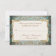 Elegante e ornamentado olhando este belo cartão de resposta RSVP de casamento é feito em um aqua rico e uma cor damasco de aparência antiga marrom. Uma área de texto colorido creme, no meio, tem gráficos de espaços decorativos de tons de ouro de ornamentado em todos os quatro cantos. O texto em um ouro marrom está pronto para personalizar com suas informações. Aditamento maravilhoso ao nosso Casamento tema damasco Quic Antique Francês.