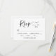 Cartões de RSVP de casamento com monograma em caligrafia moderna elegante minimalista preta e branca apresentam um design de tipografia chic e sofisticado com caligrafia. Apresentando monograma do casal com motivo de coração. Texto personalizado minimalista que pode ser personalizado com a data de resposta do RSVP. O design inclui uma linha para o(s) nome(s) do(s) convidado(s), comparecimento ao evento, escolha de refeição e o número total de convidados presentes.