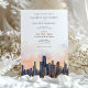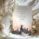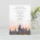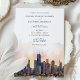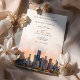 Anuncie seu casamento próximo com este convite sofisticado, apresentando a icônica silhueta de Chicago, Illinois. O cartão apresenta uma ilustração em aquarela deslumbrante da famosa arquitetura de Chicago, lindamente retratada com as cores serenas do amanhecer ou do crepúsculo. As fontes elegantes serifadas e script em terracota quente e dourado suave adicionam um toque de elegância moderna. Perfeito para casais que planejam um casamento urbano contemporâneo, este convite combina o charme da silhueta de Chicago com um refinado estilo artístico.