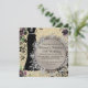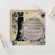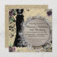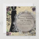 Um vestido preto chic num pano de fundo dourado com flores roxas com espirais decorativas combinadas com um círculo deslizante com prata floresce onde você pode personalizar seu evento. elegância na moda feminino.