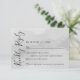 Esta placa RSVP simples e elegante apresenta um design de aquarela minimalista com fontes pretas. Todas as cores, incluindo a cor d'água da cinza da luz, podem ser alteradas, à medida que a design de aquarela fica sobre o fundo colorido. O lado frontal mostra "gentilmente Responda" em um roteiro elegante ao lado, com espaço para as respostas de seus convidados. No verso está um simples monograma para as iniciais do casal. Este cartão moderno e subestimado de recreação funciona perfeitamente com qualquer tema de casamento e em todas as estações do ano. Você também pode alterar as cores da fonte de acordo com suas preferências. A elegância chic e minimalista deste cartão RSVP garante que ele complementa uma variedade de temas de casamento, adicionando um toque de classe ao seu dia especial. Chic Elegant Watercolor Wedding RSVP Resposta Card