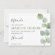 Mínimo simples será meu cartão de Madrinha de casamento? Apresentando elegante cor d'água, eucalipto verde, com falsos caules dourados em fundo branco clássico e um elegante modelo de proposta que pode ser facilmente personalizado. São usadas fontes de caligrafia manuscritas e serif cursivas. Itens correspondentes disponíveis na minha loja.