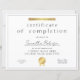 Professional Certificate of Completion in white and gold with your custom logo or business name, perfect for certificate of completion for any type of course completion such as beauty courses, professional & education courses and more! You can also use this elegant faux gold effect award design for any type of accreditation. You can edit all text , add your logo and make professional diplomas for your business or organization.