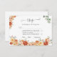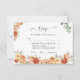 Placa de Resposta RSVP de Casamento Floral apresenta flores de cor d'água em tons de laranja, vermelho, amarelo e pêssego, acompanhadas de folhas verdes de eucalipto.