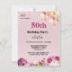 Chic Girly 50th Surprise Surprise Convite de aniversário Cic cinza-rosa e convite de aniversário de surpresa dourada, com vários balões muito cintilantes, florais cor-de-rosa pincelados e confete de coração dourado. O elegante modelo de aniversário que é fácil personalizar o fazer que este convite é perfeito para qualquer idade.