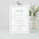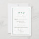 Um delicado esquema de cores verdes cria uma sensação romântica chic a estas vintage encontra-se com os modernos cartões RSVP de casamento. A frente apresenta a tipografia moderna em um layout abotoado enquanto os pop traseiros com florais distantes. Personalize para seu próprio evento e emparelhe com as peças do conjunto de coordenação.