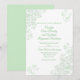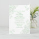 Convite de casamento na moda, feito em branco, com florescimento verde claro, nos cantos e texto verde personalizado. Personalize todos os campos de texto para seu dia especial. Os produtos de casamento correspondentes estão disponíveis.