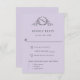 Cartão de RSVP roxo lavanda elegante com um belo monograma botânico desenhado à mão e a possibilidade de adicionar, ou não, opções de refeição. Se preferir ter seu cartão de RSVP sem opções de refeição, simplesmente apague as instruções e opções de refeição das caixas de texto para excluir ou escreva em seu lugar na caixa de texto do modelo uma mensagem pessoal para seus convidados (por exemplo, "espero que você possa vir, mal posso esperar para ver você lá!"). Cor de fundo roxo lavanda atraente. Estilo limpo, minimalista e elegante. Parte da nossa coleção "Monograma Botânico Aquarela Lavanda" com uma variedade de produtos coordenados disponíveis. Visite toda a coleção com este link: https://www.zazzle.com/collections/lavender_watercolor_botanical_monogram_wedding-119337531503251435