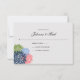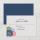 Moderno, divertido e chique! Este RSVP tem pétalas de flores feitas em azul-marinho, rosa claro, azul pálido e verde brilhante com um fundo azul-marinho sólido. Personalize com suas próprias informações. Se você precisar alterar o papel, mover o texto ou alterar o tamanho, fonte ou cor, clique em Personalizar. Convite de Casamento Correspondente