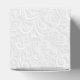 Elegante branco em um padrão de impressão de filigrana branca com seus nomes em caramute vermelho (ou qualquer cor), essas caixas de favoritos de festas quadradas de 2 polegadas são bonitas para favores de casamento, favores de chá de panela ou qualquer ocasião especial.