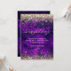 Lindo cartão de Natal e Ano Novo glitter dourado roxo escuro. Cartão de Natal cintilante e glitter. Perfeito para enviar para familiares ou amigos durante a época de festas. Para torná-lo ainda mais especial, é adornado com belo glitter artificial. Este design também pode ser transferido para qualquer produto na Zazzle. Você pode personalizá-lo com seu próprio texto e informações.