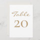 Estes cartões de número de tabela de casamento de chic e na moda apresentam um número de tabela personalizado e um conjunto de fontes de chic. A placa frontal contém uma fonte de ouro de imitação quente contra fundo branco, enquanto a parte de trás da carta exibe uma linda cor de trigo. Dica: remova a marca d'água Zazzle na parte traseira da placa selecionando esta opção na página do produto. Este cartão faz parte de uma coleção que inclui convites e outros papéis de carta de casamento.