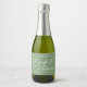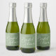 Este simples rótulo de garrafa de champanhe mini verde sage para noivado apresenta uma tipografia branca elegante para uma festa ao ar livre em um ambiente natural. Rótulo minimalista em verde claro pacífico para uma festa rústica ao ar livre perto de uma floresta de árvores.
