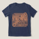 Camiseta gráfica com a linha do horizonte de Chicago Illinois. O horizonte de Chicago está na frente desta camiseta. Laranja, cor bronzeada. Personalize o verso com seu nome ou texto desejado. Camiseta excelente para homens, mulheres e crianças. Use a modelo para criar sua própria camiseta gráfica de Chicago.