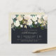Convite de chá de panela floral chique com rosas marfim creme em aquarela e folhagem exuberante com acentos de glitter dourado colocados contra um fundo azul-marinho escuro. Como parte da seleção de orçamento aqui na Zazzle, esses convites não vêm com envelopes e também não se encaixam bem em um envelope de tamanho padrão. O tamanho mais próximo é A6, mas haverá uma lacuna de aproximadamente meia polegada. Se você não se importa com a falta de ajuste, pode usar envelopes A6 amplamente disponíveis. Caso contrário, este design pode ser transferido para um formato padrão de 5x7 (que vem com envelopes) usando a ferramenta de transferência de design. Como um guia aproximado, no momento da escrita, 100 convites de orçamento (incluindo desconto por volume) custariam cerca de $39, enquanto 100 convites padrão de 5x7, incluindo envelopes, custariam aproximadamente $135. Seus resultados podem variar dependendo dos códigos promocionais disponíveis da Zazzle,