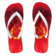 Obtenha no humor para o verão com estes os flip-flops tropica inspirados decorados com meu tiro macro de flores vermelhas tropicais do hibiscus.